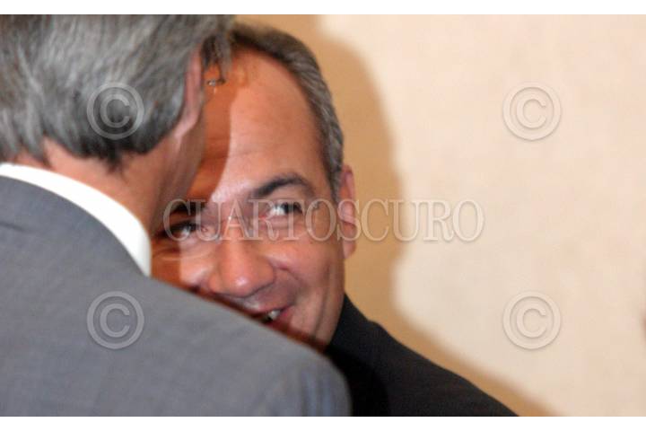 MEXICO, D.F., 27JULIO2006.- Felipe Calderón Hinijosa, candidato del PAN a la presidencia de la República, sostuvó un reunión con integrantes de la Federación de Instituciones Mexicanas Particulares de Educación Superior, en un hotel de la zona de aeropùesrto. Entre los invitados figuró el ex-sectreatrio de seguridad Pública Alejandro Gertz Manero. FOTO: Moisés Pablo/CUARTOSCURO.COM