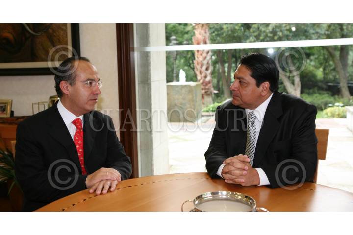 MEXICO D.F A 25JULIO2007.-El president Flipe Calderon Hinojosa se reunio con dirigentes del movimiento "Los de abajo". FOTO:FOTO ALFREDO GUERRERO/CUARTOSCURO.COM