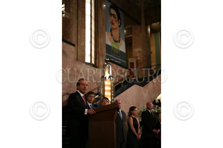MÉXICO, D.F., 13JUNIO2007.- Felipe Calderón Hinojsa, Presidente de la República, inauguró la exposición "Frida Kahlo , Homenaje 1907-2007" en el Palacio de Bellas Artes. FOTO: ALFREDO GUERRERO/CUARTOSCURO.COM