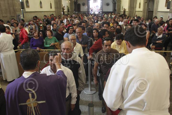 MÉXICO, D.F., 22FEBRERO2012.- Fieles católicos acudieron a la iglesia de San Hipolito a tomar ceniza para dar inicio al primer día de la Cuaresma. FOTO: SAÚL LÓPEZ /CUARTOSCURO.COM