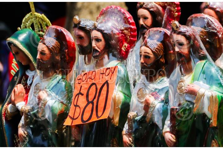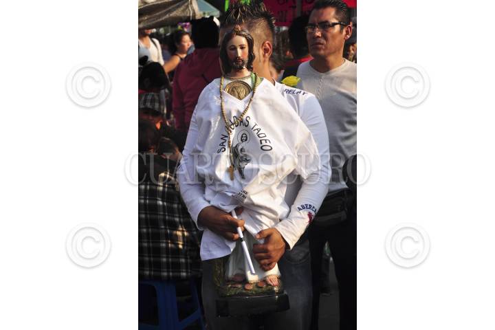 MÉXICO, D.F., 28ENERO2013.- Como ya es tradición, cada 28 de mes se congregan decenas de creyentes en la iglesia de San Hipólito con imágenes y figuras de San Judas Tadeo. FOTO: SANDRA PÉREZ /CUARTOSCURO.COM