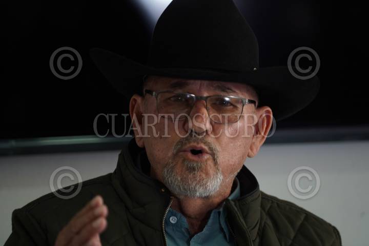 Hipólito Mora Chávez durante la conferencia de prensa con motivo del 10 Aniversario de la fundación de las autodefensas en Michoacán.