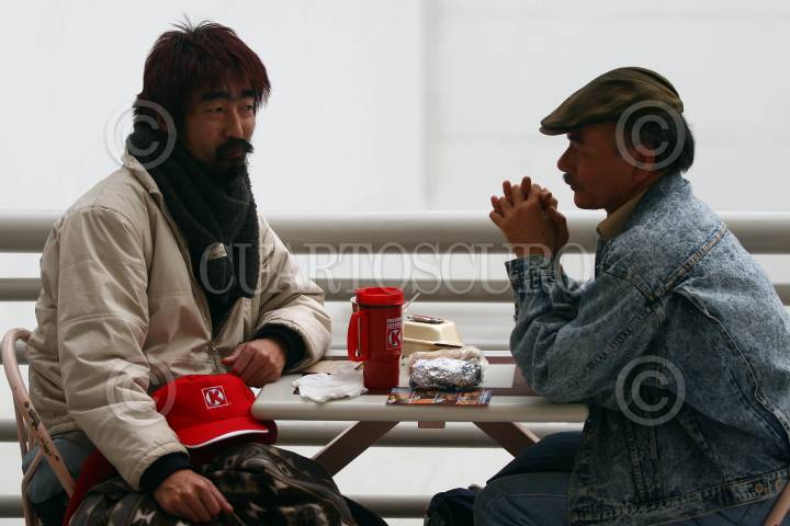 MÉXICO D.F., 20NOVIEMBRE2008.- Hiroshi Nohara de origen Japones quien ha permanecido mas de 75 dias viviendo en la zona de comidas del aeropuerto internacional de la ciudad de México ha sido apoyado por la comunidad japonesa en México que le han regalado insumos personales. FOTO: SAÚL LÓPEZ/CUARTOSCURO.COM