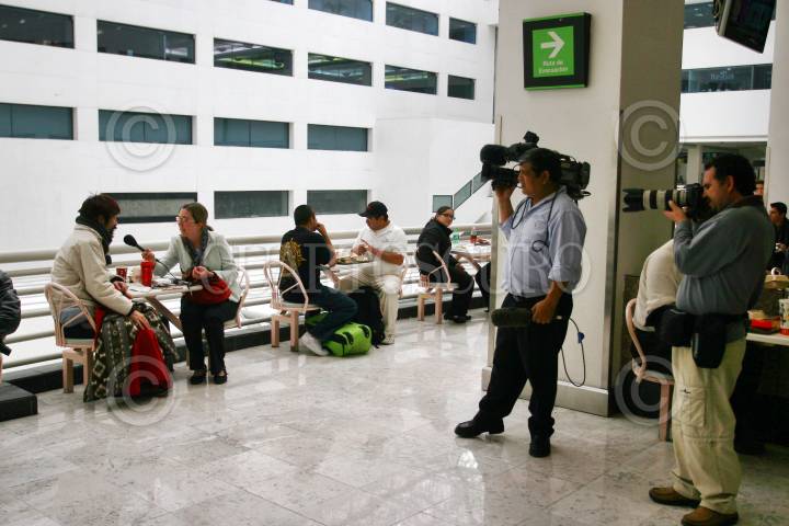 MÉXICO D.F., 20NOVIEMBRE2008.- Hiroshi Nohara de origen Japones quien ha permanecido mas de 75 dias viviendo en la zona de comidas del aeropuerto internacional de la ciudad de México, ha llamado la atencion de la prensa nacional quien hace guardias en el trascurso del día para seguir los movimientos de éste turista extranjero. FOTO: SAÚL LÓPEZ/CUARTOSCURO.COM