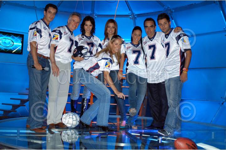 MÉXICO, D.F., 30ENERO2007.- El equipo de TV Azteca se prepara para dar cobertura del Super Bowl XLI que se jugará en Miami, entre los integrantes se encuentran las conductoras Romina e Ivette de Hit M3, Inés Sainz y los narradores deportivos Enrique Garay, Joaquín Castillo y Juan Carlos Vázquez. FOTO: TV AZTECA/CUARTOSCURO.COM