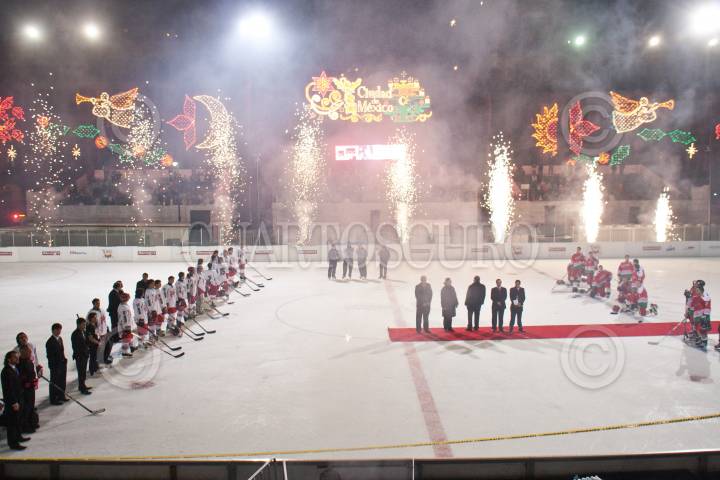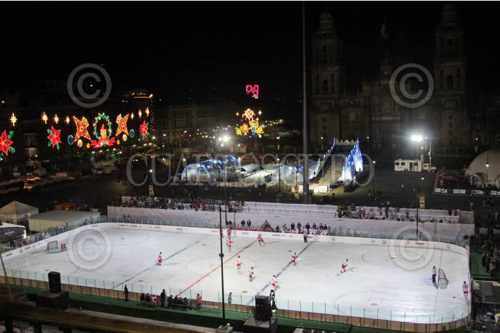 MÉXICO, D.F., 09ENERO2010.- Con la Inauguración del campeonato de hockey en el Zócalo , se dio por clausurada la Pista de Hielo y las actividades de la Navidad en la Ciudad. FOTO: HERMES QUETZACOATL/CUARTOSCURO.COM