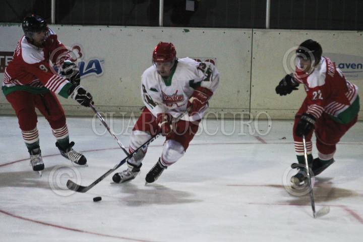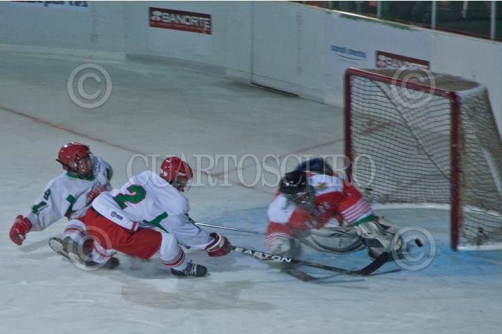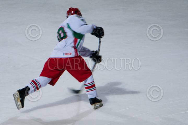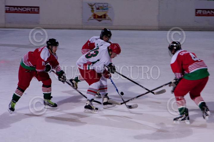 MÉXICO, D.F., 25FEBRERO2012.- El jugador Luis David González del equipo Tigres de Metepec realiza un tiro a gol durante el primer partido del Campeonato Nacional de hockey sobre hielo, en contra de los Borregos de Monterrey. Participarán 11 equipos de más de 5 estados en el Campeonato que inició la noche del viernes 24 de febrero. FOTO: CARLOS VARGAS /CUARTOSCURO.COM