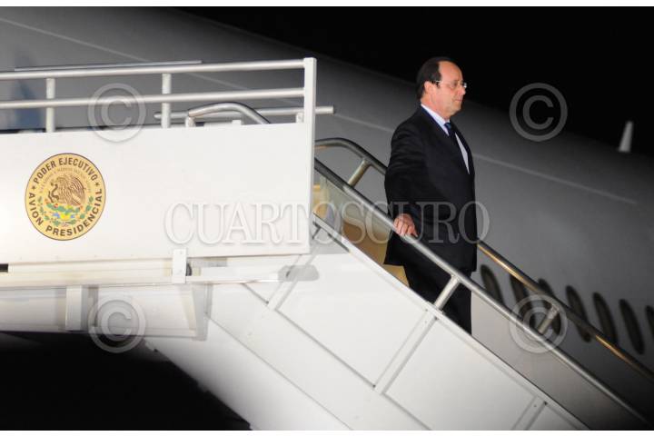 MÉXICO, D.F., 10ABRIL2014.- Francois Hollande, presidente de Francia, llego al hangar presidencial con lo que inicia la visita de estado a México. FOTO: IVÁN STEPHENS /CUARTOSCURO.COM