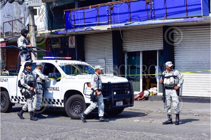 ACAPULCO, GUERRRO, 20ABRIL2024.- Un grupo de hombres armados ingresó al bar "el chupe" ubicado en la calle Velázquez de León en el centro de Acapulco, y asesinaron a un hombre a balazos, el lugar fue asegurado por agentes de la Guardia Nacional mientras se realizaban las diligencias de ley. FOTO: CARLOS ALBERTO CARBAJAL/CUARTOSCURO.COM