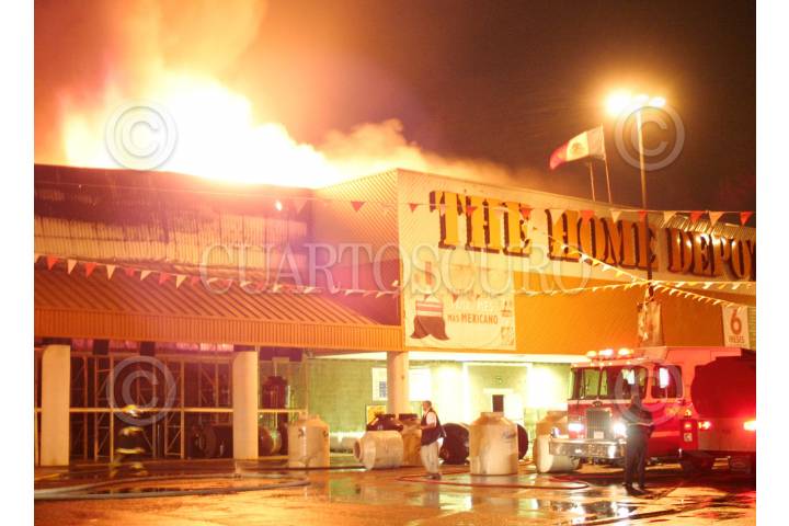 MÉXICO, D.F., 15SEPTIEMBRE2008.- La tienda comercial "Home Depot" de Cucurpe y avenida del Taller en la colonia 24 de Abril, ardio en su totalidad esta madrugada por una explosión en el área de la bodega de madera. FOTO: LUZ ACEVEDO/CUARTOSCURO.COM