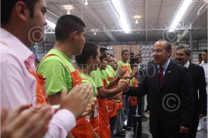 CIENEGA DE FLORES, MONTERREY 27MAYO2009.- Felipe Calderón, presidente de México, durante la inauguración del Centro de Distribución Multicanal Monterrey The Home Depot. FOTO: ALFREDO GUERRERO/CUARTOSCURO.COM