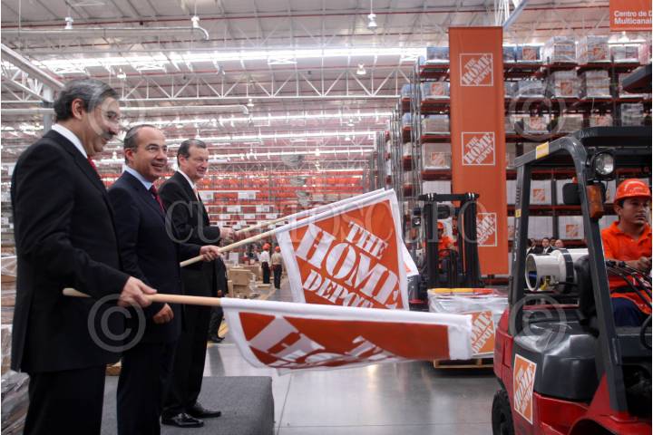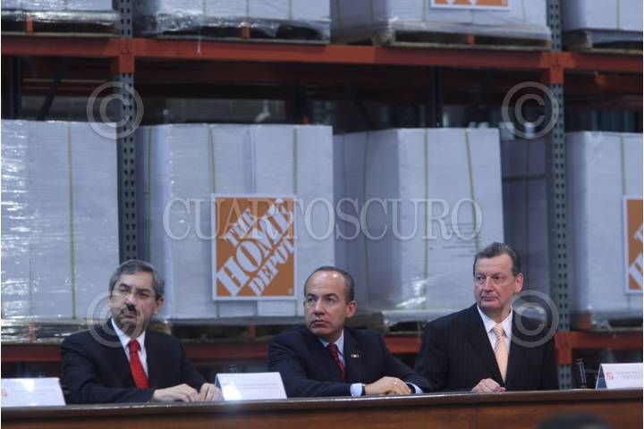 CIENEGA DE FLORES, MONTERREY 27MAYO2009.- José Natividad González, gobernador de Nuevo León; Felipe Calderón, presidente de México y Ricardo Saldívar, presidente y director de The Home Depot México, durante la inauguración del Centro de Distribución Multicanal Monterrey The Home Depot. FOTO: ALFREDO GUERRERO/CUARTOSCURO.COM