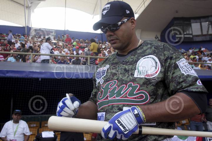 OAXACA, OAXACA, 11MAYO2013.- Japhet Amador, primera base de Diablos Rojos de México se alzó como el máximo cañonero en el Derby de Home Runs "Nelson Barrera" de la edición 2013 que tiene como sede el estadio Eduardo Vasconcelos casa de los Guerreros de Oaxaca. Amador venció en la final a Bárbaro Cañizares de los Guerreros, dos cuadrangulares a uno. Asimismo, el derby de mascotas fue ganado por Rocco de los Diablos Rojos. FOTO: ARTURO PÉREZ ALFONSO /CUARTOSCURO.COM