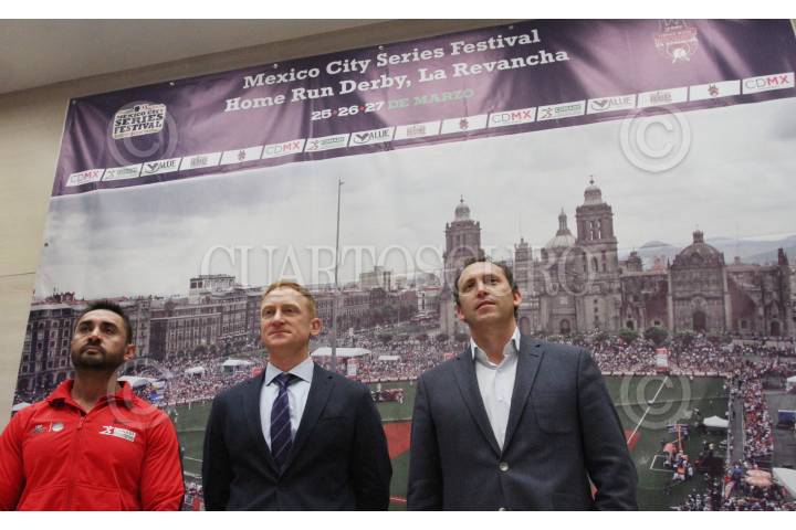 CIUDAD DE MÉXICO, 23MARZO2016.- Horacio de la Vega, director de Indeporte, presentó el Home Run Derby que se llevará a cabo es fin de semana en el Zócalo Capitalino. En el evento deportivo participarán los equipos Padres de San Diego y Astros de Houston. FOTO: MARÍA JOSÉ MARTÍNEZ /CUARTOSCURO.COM