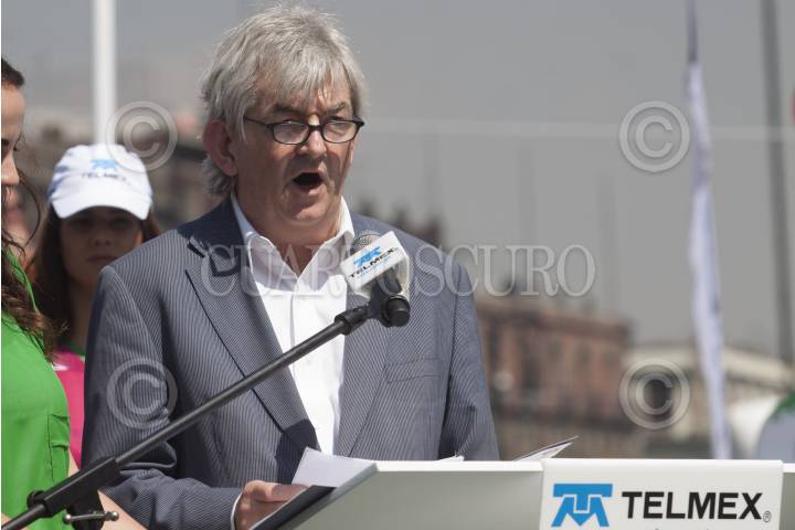 MÉXICO, D.F., 06OCTUBRE2012.- Mel Young, fundador de "La Homeless" que surgió en 2003 en Europa y que tiene por objetivo el mejorar la calidad de vida de los jóvenes amantes del fútbol, ofreció un mensaje en la inauguración de la Homeless World Cup México City 2012 que se jugará en el Zócalo. Éste es un torneo en donde participan 52 países y los integrantes de estas escuadras muchas veces no tienen casa o están metidos en problemas de drogas y alcohol, por lo que esta iniciativa les una salida que la del deporte en la práctica de fútbol. FOTO: MOISÉS PABLO /CUARTOSCURO.COM