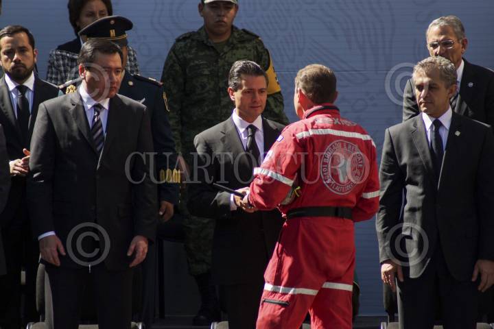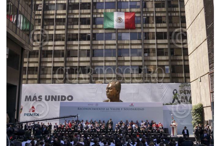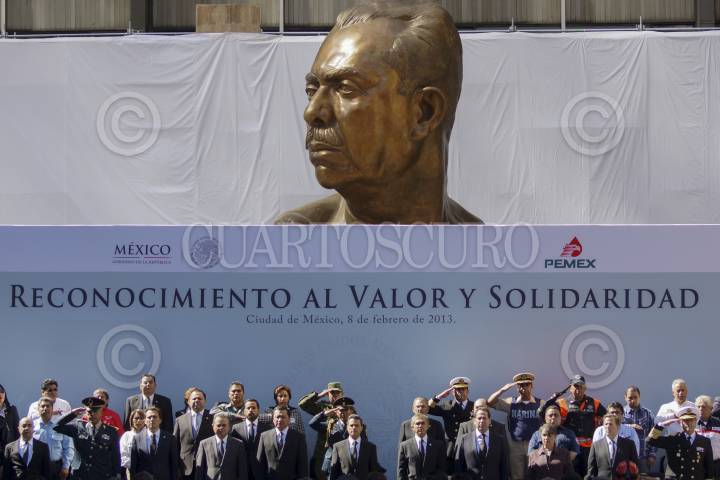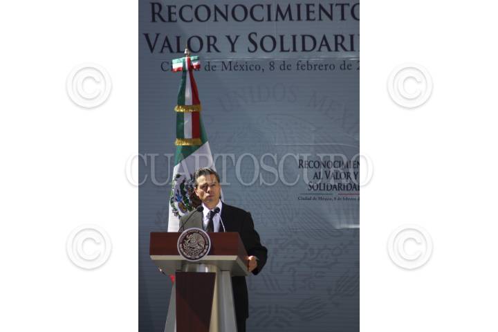 MÉXICO, D.F., 08FEBRERO2013.- Enrique Peña Nieto, presidente de México, encabezó el homenaje a las 37 victimas de muerte en la explosión en la sede de Petróleos Mexicanos. Además, entregó reconocimientos a las diferentes dependencias y organizaciones ciudadanas que ayudaron el día del siniestro a las victimas. FOTO: ADOLFO VALTIERRA /CUARTOSCURO.COM