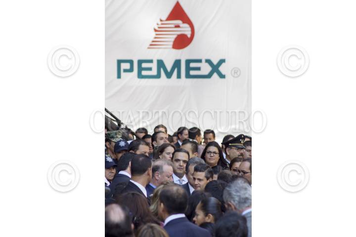 MÉXICO, D.F., 08FEBRERO2013.- Emilio Lozoya, director de PEMEX; y Enrique Peña Nieto, presidente de México, quein encabezó el homenaje a las 37 victimas de muerte en la explosión en la sede de Petróleos Mexicanos. Además, entregó reconocimientos a las diferentes dependencias y organizaciones ciudadanas que ayudaron el día del siniestro a las victimas. FOTO: ADOLFO VALTIERRA /CUARTOSCURO.COM