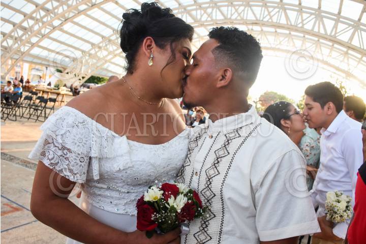 Sesenta y cinco parejas entre ellas dos perteneciente a la comunidad LGBT contrajeron matrimonio en la primer boda Colectiva Inclusiva de Campeche