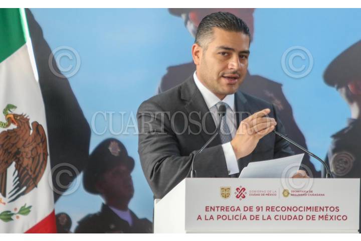 Omar García Harfush, titular de la SSC en el reconocimiento a policías de la Ciudad.