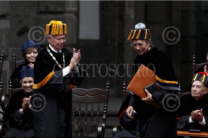 MÉXICO, D.F., 22SEPTIEMBRE2011.- El cineasta español Carlos Saura recibió el doctorado Honoris Causa de parte del rector de la UNAM, José Narro durante una ceremonia en el Palacio de Minería. FOTO: RODOLFO ANGULO/CUARTOSCURO.COM