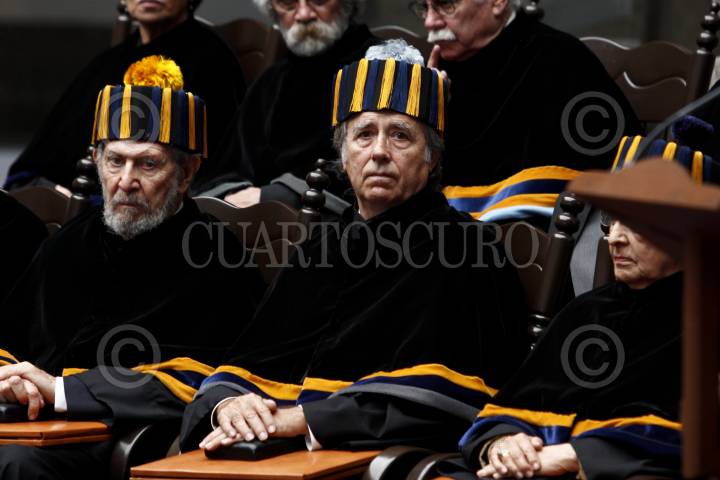 MÉXICO, D.F., 22SEPTIEMBRE2011.- El cantautor Joan Manuel Serrat recibió el doctorado Honoris Causa de parte del rector de la UNAM, José Narro durante una ceremonia en el Palacio de Minería. FOTO: RODOLFO ANGULO/CUARTOSCURO.COM