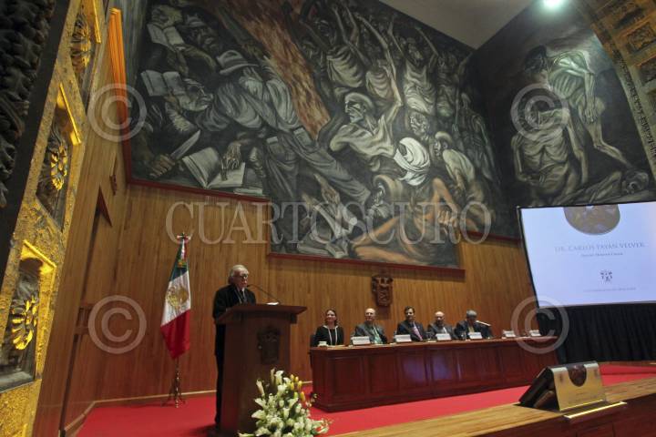 GUADALAJARA, JALISCO, 04DICIEMBRE2013.- En el Paraninfo "Enrique Díaz de León" de la Universidad de Guadalajara, se llevó a cabo la entrega del Doctorado Honoris Causa a Carlos Payán Velver, por el reconocimiento a su labor periodística, así como por la participación y creación del Diario la Jornada. FOTO: FERNANDO CARRANZA GARCIA /CUARTOSCURO.COM