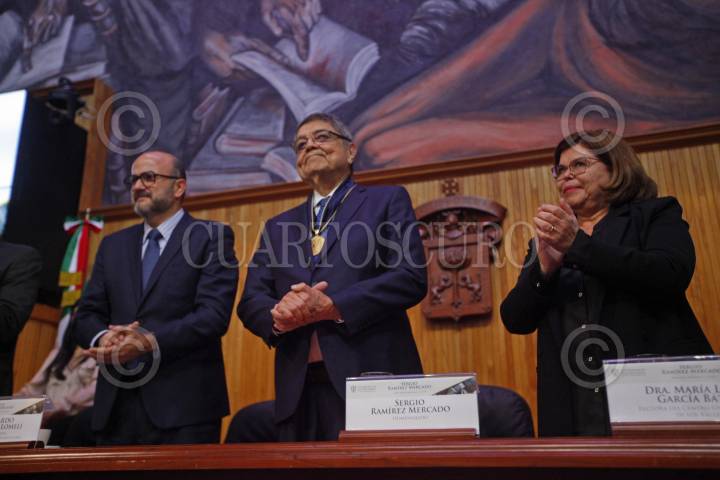 Imagen general del Paraninfo Enrique Díaz de León durante la entrega del Doctorado Honoris Causa al científico y académico mexicano José Aristeo Sarukhán Kermez, esto en la edición 36 de la Feria Internacional del Libro de Guadalajara (FIL).