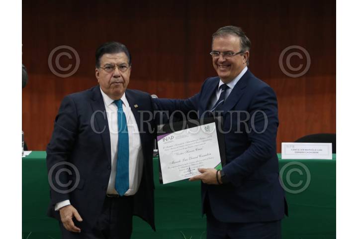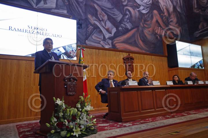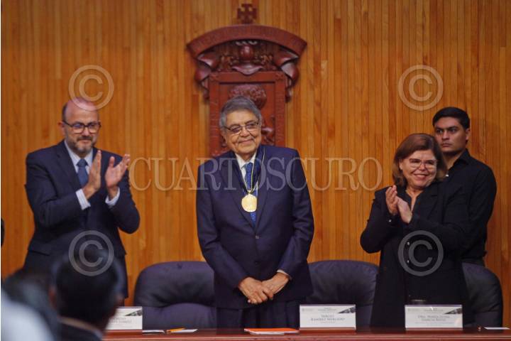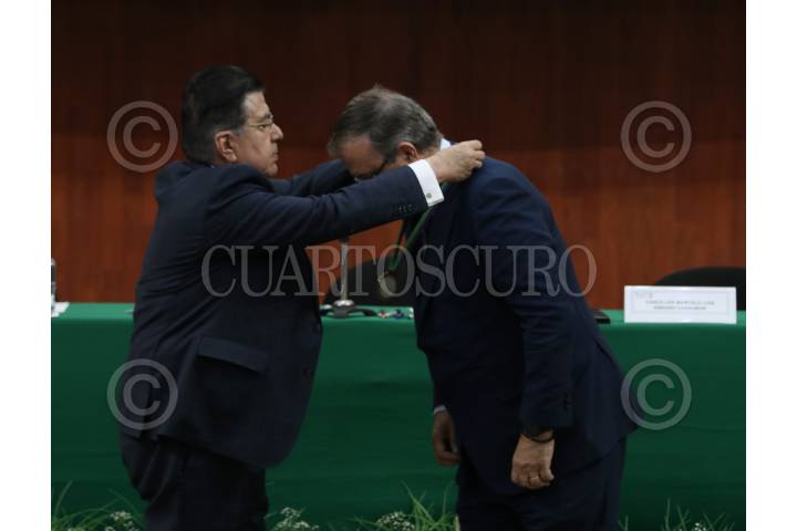 Marcelo Ebrard Casaubon, secretario de Relaciones Exteriores recibió la sexta medalla de Doctorado Honoris Causa durante ceremonia encabezada por Luis Miguel Martínez Anzures.