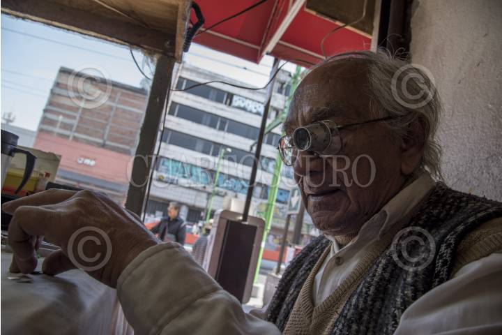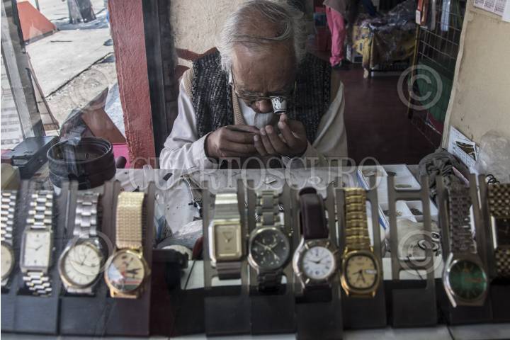 CIUDAD DE MÉXICO, 12ENERO2017.- Francisco, un señor de la tercera edad, se dedica a reparar relojes de todo tipo sobre Eje Central a unos metros del Teatro Blanquita. FOTO: TERCERO DÍAZ /CUARTOSCURO.COM