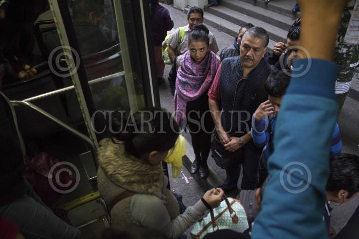 MÉXICO, D.F., 11SEPTIEMBRE2014.-La afluencia de pasajeros es tanta que las instalaciones apenas resultan suficientes para recibir a toda la cantidad de personas que hacen uso del servicio. Hacia el final del trayecto, los camiones de RTP tienen que pasar estaciones sin detenerse por no poder recibir un pasajero más, dejando varados a decenas de usuarios que deben esperar largos tiempos hasta que pase algún camión que abra sus puertas, aunque no tenga espacio, para intentar apretarse y abordar. FOTO: DAVID POLO /CUARTOSCURO.COM