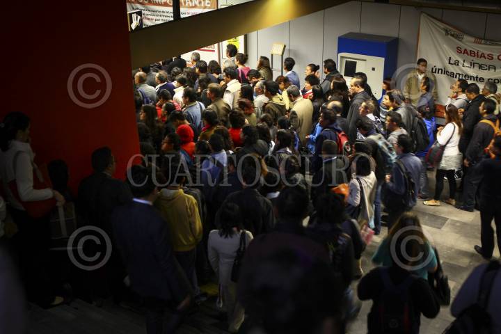 MÉXICO, D.F., 11SEPTIEMBRE2014.-La afluencia de pasajeros es tanta que las instalaciones apenas resultan suficientes para recibir a toda la cantidad de personas que hacen uso del servicio. Hacia el final del trayecto, los camiones de RTP tienen que pasar estaciones sin detenerse por no poder recibir un pasajero más, dejando varados a decenas de usuarios que deben esperar largos tiempos hasta que pase algún camión que abra sus puertas, aunque no tenga espacio, para intentar apretarse y abordar. En la imagen, usuarios a le entrada del metro Atlalilco. FOTO: DAVID POLO /CUARTOSCURO.COM