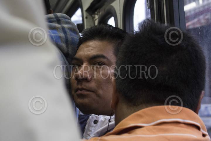 MEXICO, D.F., 11SEPTIEMBRE2014.- Los pasajeros, que en su mayoría provienen de zonas marginadas al sur de la ciudad y Estado de México, han optado por desplazarse como hacían antes de la línea 12, desplazándose primero a Tulyehualco para realizar un trayecto de más de una hora hasta la estación Taxqueña del metro, en combis que brindan servicio directo por $13, más el costo de la entrada al metro. Esto supone un gasto extra de $8 para el de por sí devaluado salario que perciben más de la mitad de los habitantes de esta ciudad. En promedio, para llegar hasta una estación del metro desde el sur de la ciudad hay que transbordar dos o tres veces y cuesta hasta $25, en algunos casos más. En la imagen, los pasajeros duermen a bordo de una vagoneta de servicio directo a Taxqueña. Muchos de ellos usan el servicio para desplazarse hasta la estación San Andrés Tomatlán de la Línea 12 y de ahí llegar a Atlalilco en los RTP del servicio emergente del GDF. FOTO: DAVID POLO /CUARTOSCURO.COM