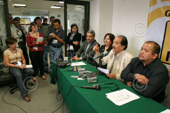 MEXICO, D.F., 20MARZO2008.- Agustín Guerrero, Hortensia Aragón, Jesús Martín del Campo y Roberto López , representantes de la campaña del candidato Alejandro Encinas, ofrecieron una conferencia de prensa para hablar sobre los lineamientos que debe seguirse para vigilar la transparencia del conteo de los votos de los ocho estados que han sido cuestionados por sus irregularidades, realizada en el CEN del PRD. FOTO: MOISÉS PABLO/CUARTOSCURO.COM