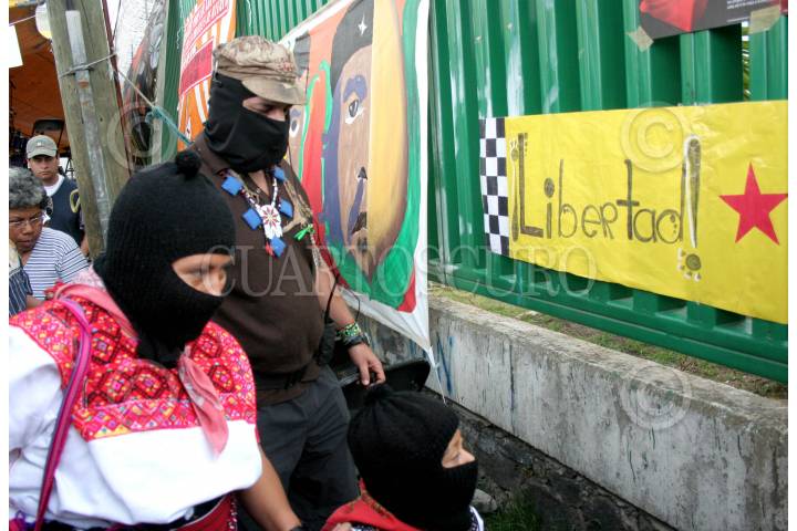 ALMOLOYA DE JUAREZ, ESTADO DE MEXICO 05MAYO2007.- El Subcomandante Marcos, la comandanta Hortencia, su hija y aderentes a la otra campaña realizaron un mitin en las afueras del penal de maxima seguridad Santiaguito donde tienen detenidos alos habitantes de Atenco quienes lucharon por sus tierras el pasado 5 de Mayo. FOTO: CARLOS TISCHLER/CUARTOSCURO.COM