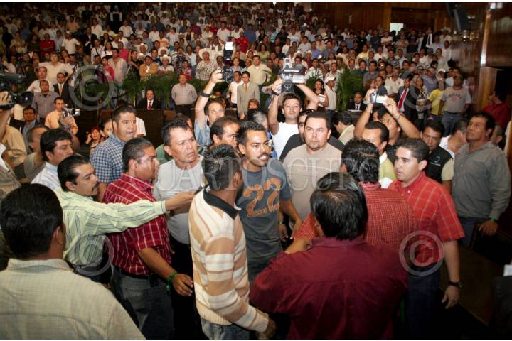 CUERNAVACA, MORELOS, 01OCTUBRE2009.- Aproximadamente a las 12:40 del medio día, un grupo de jóvenes irrumpió en el salón de plenos del Congreso Local, donde se desarrollaba una sesión ordinaria la cual fue suspendida por este hecho. Desde hace una semana 11 de los 15 diputados del PRI cambiaron a su coordinador Julio Espin quien fue sustituido por Jorge Arizmendi, ello a provocado encono entre los priistas. Se rumora que estos jóvenes que impidieron la sesión son gente de Maricela Sánchez Cortes y Guillermo del Valle Reyes quienes detentan el poder del PRI en el estado y contrarios a los diputados que se revelaron. FOTO: LUCIO LARA/CUARTOSCURO.COM