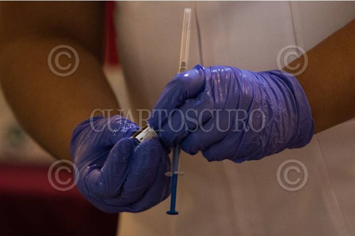 Una enfermera aplica la vacuna contra el Covid-19 antes de inmunizar al personal médico del Hospital Central Militar.
