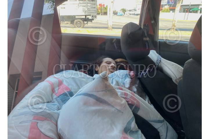 Familiar de paciente del Enrique Cabrera descansa abordo de un carro. FOTO: ROGELIO MORALES /CUARTOSCURO.COM