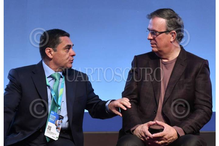 Héctor Flores Hidalgo, presidente de la a Asociación Nacional de Hospitales Privados (ANHP) y Marcelo Ebrard, aspirante a Coordinador de Defensa de la 4T, durante el Segundo Congreso de la Asociación Nacional de Hospitales Privados (ANHP) "El futuro de la salud en México, buscando soluciones juntos" celebrado en el Hospital Español.