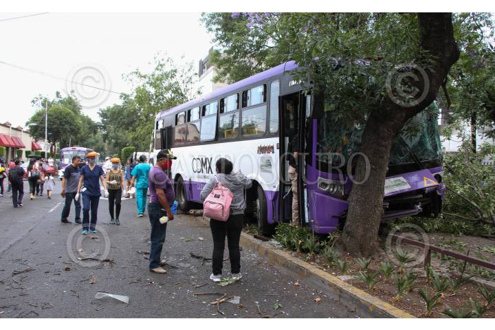 Un autobús de transporte público chocó contra un árbol frente al Hospital Gea González.