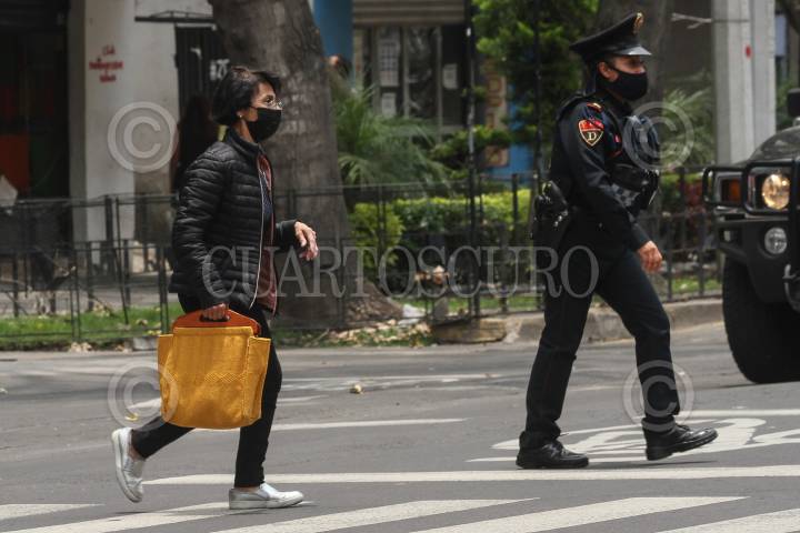 Un trío de policías durante su salida del área de urgencias el Hospital Xoco.