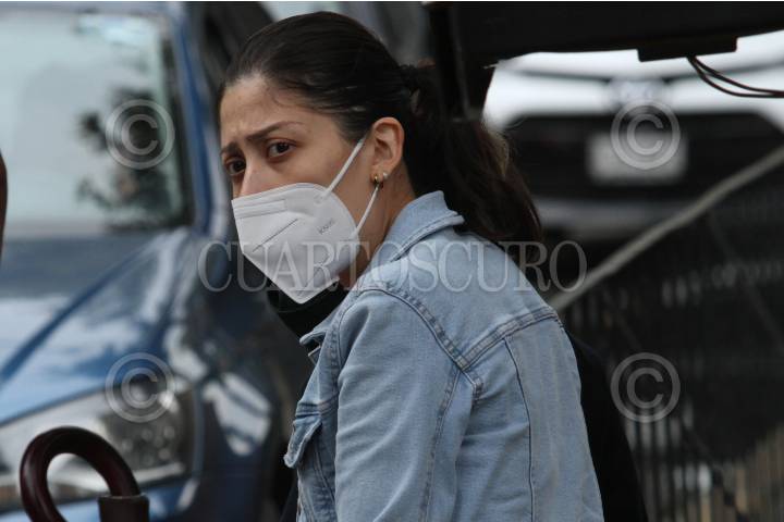 Mamá de Polly acompañada de una policía, durante su llegada al Hospital Xoco.