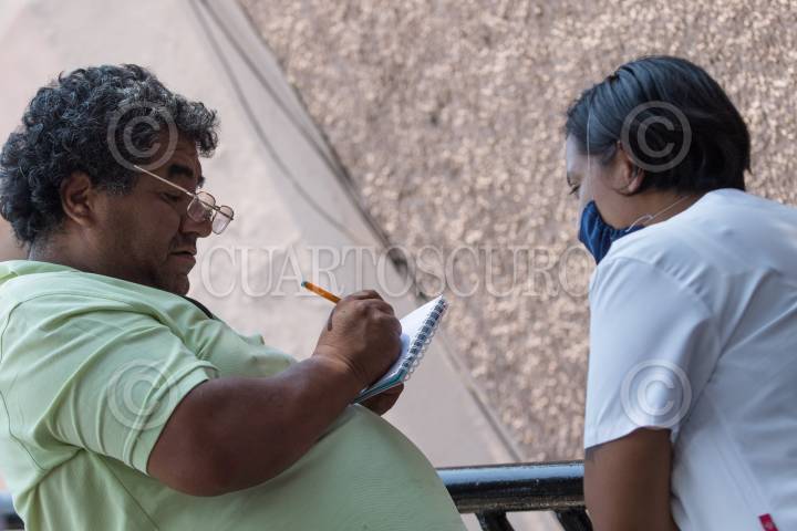 La enfermera Susana que trabaja en el Hospital de Infectología donde se atiende a pacientes de Covid-19 se dio a la tarea de recolectar mensaje en una libreta de la personas que esperan tener noticias de sus seres queridos que están ahí ingresados con la promesa de hacérselos llegar