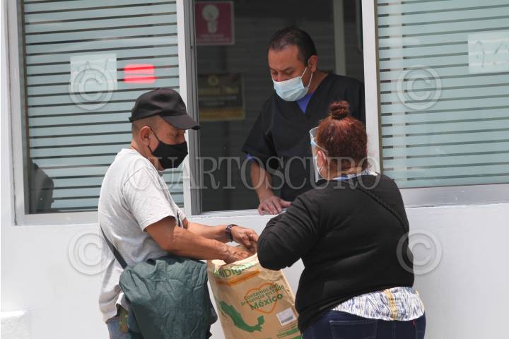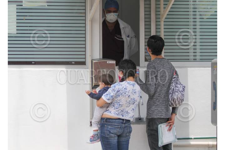 Un niño con el brazo enyesado acompañado de su mamá acudieron a recibir atención médica al Área de Urgencias del Hospital Pediátrico La Villa, el cual está ocupado por el 86% para atender a pacientes con Covid-19