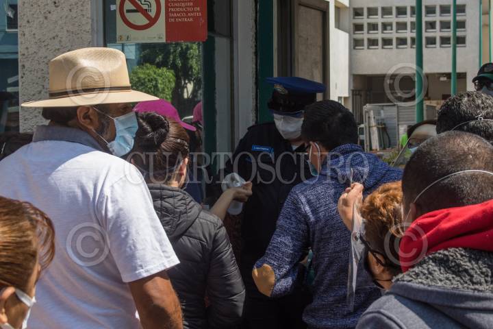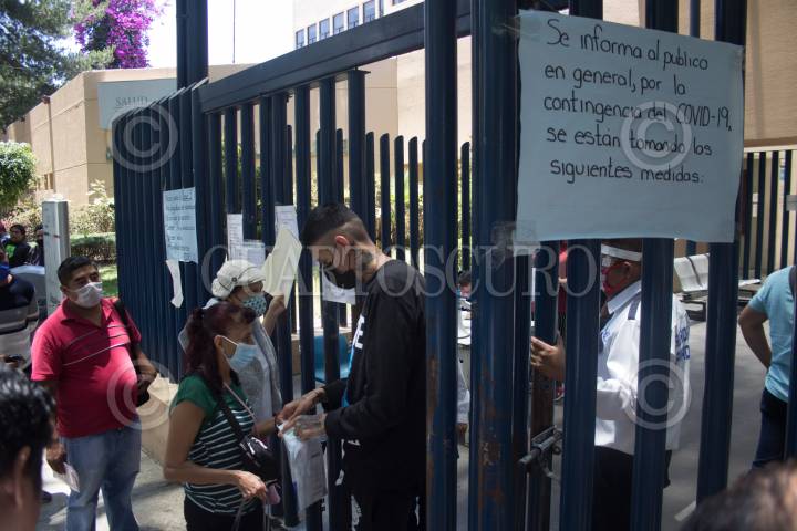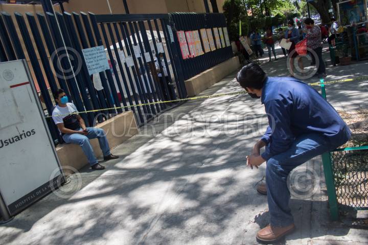 Personas esperan afuera del área de urgencias del Hospital Rubén Leñero, este nosocomio fue dispuesto por la Jefa de Gobierno para recibir a pacientes de Covid-19