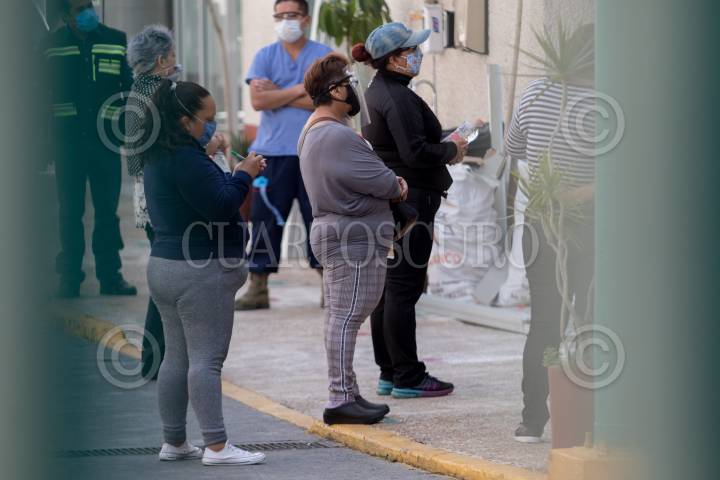 Familiares esperan ingresar a la sala en donde recibirán noticias de sus pacientes en el Hospital Rubén Leñero, la mayoría de ellos tienen síntomas de Covid-19 por lo que no puede tener contacto físico con ellos