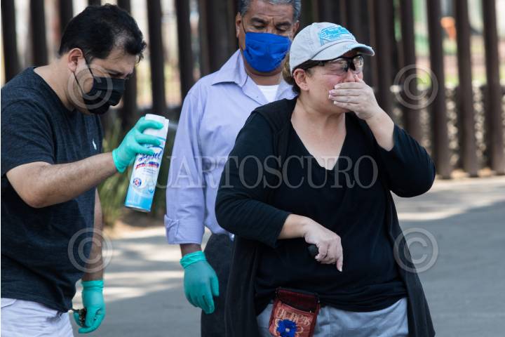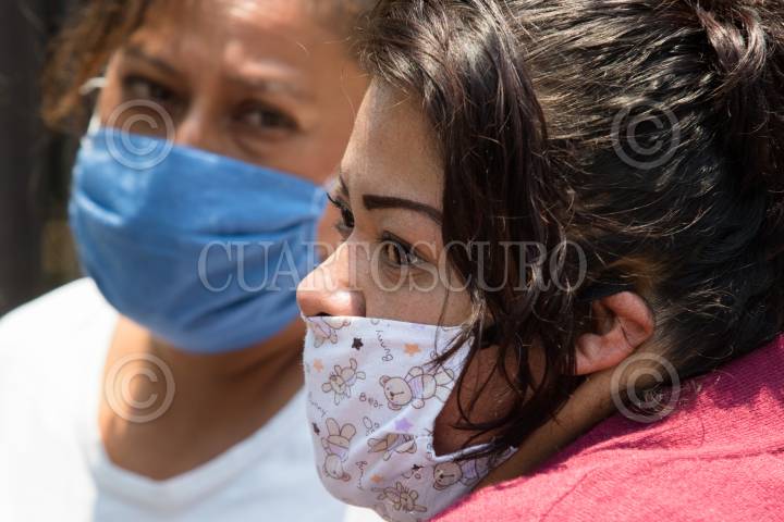Berenice Martínez espera a las afueras del Hospital de Expansión para pacientes de Covid-19 en espera de tener noticias de su esposo Erick López del cual no sabe nada desde que ingresó el viernes pasados con insuficiencia respiratoria