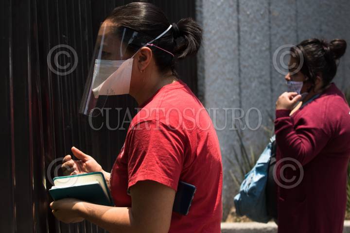 Médicos solicitan insumos en un Área designada del espacio de afuera hacia el Área de Covid-19 en el Pabellón de Terapia Intermedia en el Hospital de Expansión Autódromo Hermanos Rodríguez