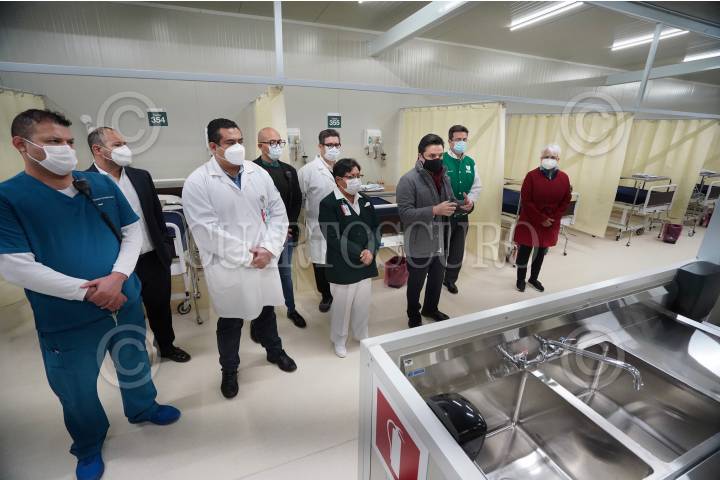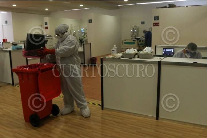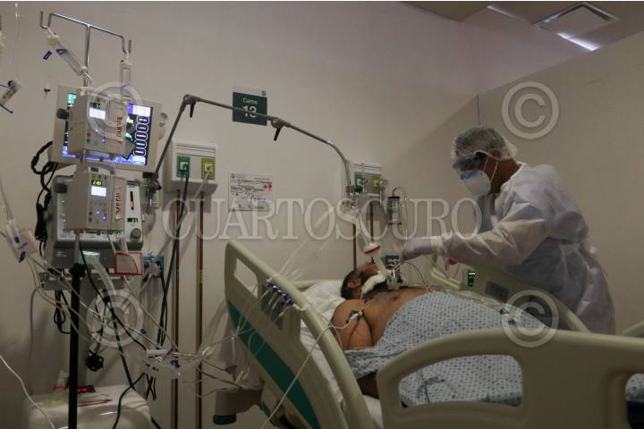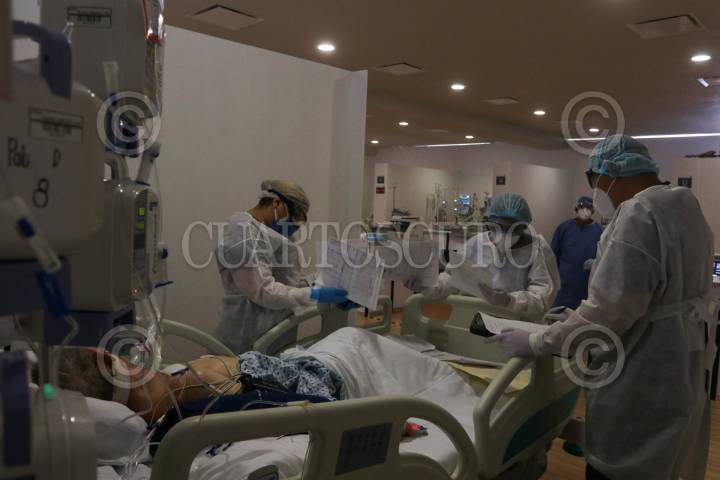 Médicos revisaron el estado de salud de un paciente con Covid-19 en Pabellón de Terapia Intensiva en el Hospital de Expansión Autódromo Hermanos Rodríguez