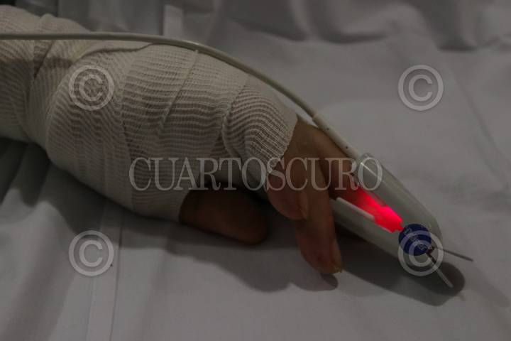 La mano de un paciente con Covid-19 en el Pabellón de Terapia Intensiva en el Hospital de Expansión Autódromo Hermanos Rodríguez