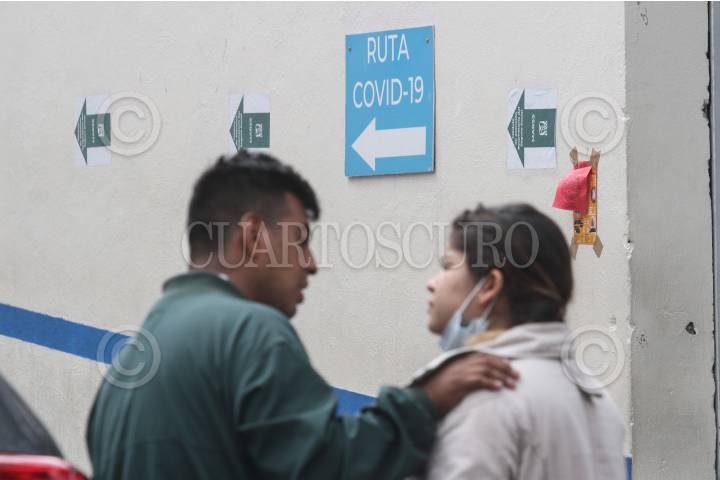 Pese a riesgo de contagio por COVID-19, personas permanece aglomeradas en él área de urgencias del Hospital de los Venados. FOTO: ROGELIO MORALES /CUARTOSCURO.COM